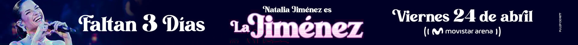 NATALIA JIMÉNEZ | LA JIMÉNEZ Movistar Arena Bogotá 24 Abr Vie 24 Abr NATALIA JIMÉNEZ | LA JIMÉNEZ Bogotá 20 Abr Lun