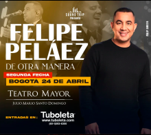 Felipe Peláez - De otra manera - Segunda Fecha Teatro Mayor Julio Mario Santo Domingo Bogotá 24 Abr Vie 24 Abr Felipe Peláez - De otra manera - Segunda Fecha Bogotá 20 Abr Lun