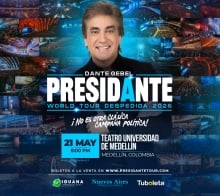 DANTE GEBEL PRESIDANTE 2026 | WORLD TOUR DESPEDIDA - MEDELLÍN Teatro Universidad de Medellín Medellín 21 Mayo Jue 21 Mayo DANTE GEBEL PRESIDANTE 2026 | WORLD TOUR DESPEDIDA - MEDELLÍN Medellín 22 Dic Lun