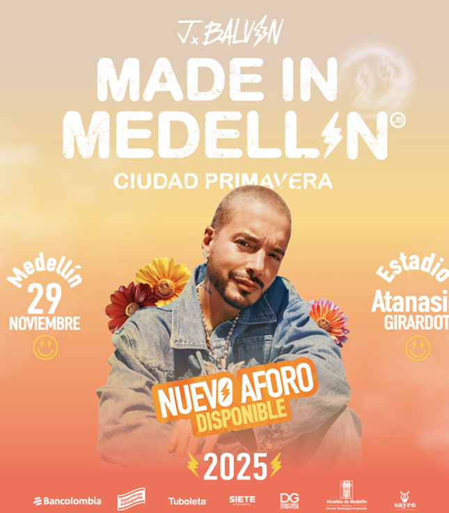 Destacados J BALVIN MADE IN MEDELLIN Estadio Atanasio Girardot Medellín 29 Nov Sáb 29 Nov J BALVIN MADE IN MEDELLIN - PÁSALA Estadio Atanasio Girardot Medellín 29 Nov Sáb 29 Nov FIESTA ALICIA EN EL JARDÍN DE LAS MARAVILLAS Planetario de Bogotá Bogotá 29 Nov Sáb 29 Nov ELA TAUBERT : PREGUNTAS A LAS 11:11 TOUR Teatro Jorge Eliécer Gaitán Bogotá 29 Nov Sáb 29 Nov Navidad en espiral Teatro Metropolitano de Medellín Medellín 30 Nov Dom 30 Nov Orquesta Filarmónica de Bogotá Teatro Mayor Julio Mario Santo Domingo Bogotá 30 Nov Dom 30 Nov FRANCIS MERCIER- SOLÈY Jardín Botánico - Orquideorama Medellín 30 Nov Dom 30 Nov Mostrar más eventos