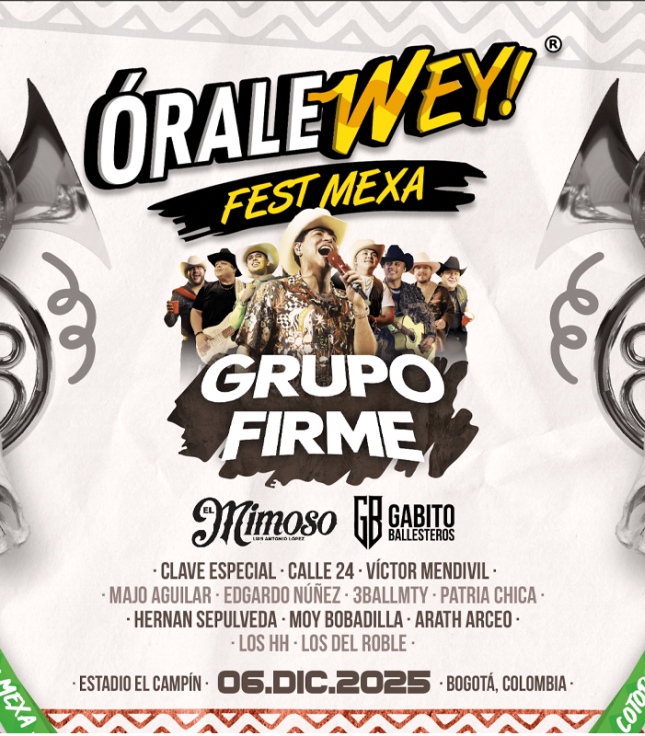 Destacados ORALE WEY | FEST MEXA Estadio El Campín Bogotá 06 Dic Sáb 06 Dic ORALE WEY | FEST MEXA - PASALA Estadio El Campín Bogotá 06 Dic Sáb 06 Dic CLASICOS NAVIDEÑOS Teatro Cafam Bogotá Desde 06 Dic Sáb 06 Dic Hasta 07 Dic Dom 07 Dic “La de Las Cumbiecitas Elegantes Tour 2025” - Diana Burco Teatro Santander Bucaramanga 06 Dic Sáb 06 Dic 'Mesías', de Georg Friedrich Händel Teatro Mayor Julio Mario Santo Domingo Bogotá Desde 06 Dic Sáb 06 Dic Hasta 07 Dic Dom 07 Dic EPIC Teatro Jorge Eliécer Gaitán Bogotá 06 Dic Sáb 06 Dic BORIS BREJCHA REFLECTIONS TOUR 2025 - MEDELLÍN Cincuentenario Medellín 06 Dic Sáb 06 Dic Mostrar más eventos