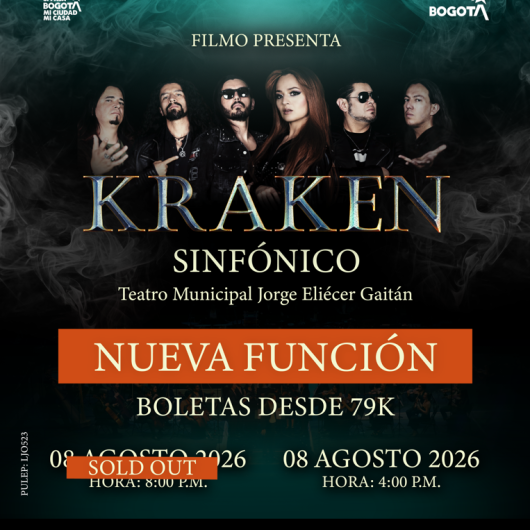 Destacados FANTASY - CALI Teatro Municipal Enrique Buenaventura Cali 01 Ago Sáb 01 Ago Plural Ensemble (España), ensamble pierrot Sala de Conciertos de la Biblioteca Luis Ángel Arango Bogota 02 Ago Dom 02 Ago RICARDO ARJONA | LO QUE EL SECO NO DIJO - CUARTA FECHA Movistar Arena Bogota 02 Ago Dom 02 Ago PAULO LONDRA - BOGOTÁ 2026 Movistar Arena Bogotá 08 Ago Sáb 08 Ago KRAKEN SINFÓNICO Teatro Jorge Eliécer Gaitán Bogota 08 Ago Sáb 08 Ago Orquesta Filarmónica de Bogotá y Herencia de Timbiquí Teatro Mayor Julio Mario Santo Domingo Bogota Desde 08 Ago Sáb 08 Ago Hasta 09 Ago Dom 09 Ago GRUPO FIRME | LA ÚLTIMA PEDA 2026 - BUCARAMANGA Estadio José Américo Montanini Bucaramanga 08 Ago Sáb 08 Ago KRAKEN SINFÓNICO BOGOTÁ Teatro Jorge Eliécer Gaitán Bogota 08 Ago Sáb 08 Ago Agrupaciones Filarmónicas Teatro Estudio - Julio Mario Santo Domingo Bogota 09 Ago Dom 09 Ago Orquesta Experimental CCMC Teatro Estudio - Julio Mario Santo Domingo Bogota 11 Ago Mar 11 Ago Paginación « Primero Primera página ‹ Anterior Página anterior … 14 15 16 17 18 19 20 21 22 … Siguiente › Siguiente página Último » Última página