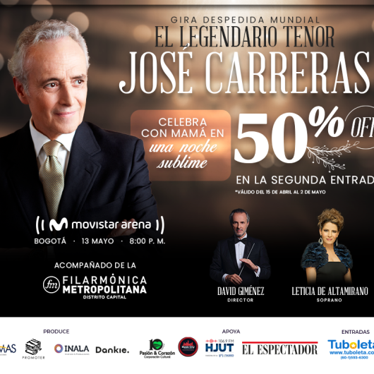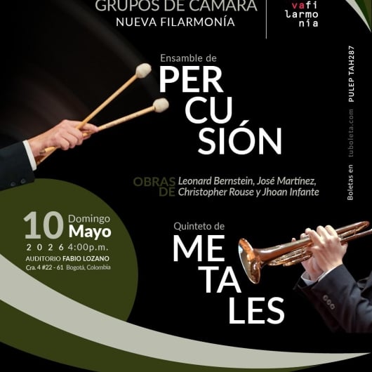 Destacados Orquesta Sinfónica Nacional de Colombia Teatro Mayor Julio Mario Santo Domingo Bogotá 10 Mayo Dom 10 Mayo GRUPO DE CAMARA NUEVA FILARMONÍA Auditorio Fabio Lozano Bogotá 10 Mayo Dom 10 Mayo KAPO - SEGUNDA FECHA Movistar Arena Bogotá 10 Mayo Dom 10 Mayo JUNIOR H | LATINOAMÉRICA EN LAGRIMAS 2026 Movistar Arena Bogotá 12 Mayo Mar 12 Mayo JOSÉ CARRERAS | GIRA DESPEDIDA MUNDIAL Movistar Arena Bogotá 13 Mayo Mié 13 Mayo NOCHE DE GALA PARA MAMÁ ANGELA CARRASCO - MANUEL JOSÉ Teatro Universidad de Medellín Medellín 14 Mayo Jue 14 Mayo Gran Concierto Los Muchos Teatro Santander Bucaramanga 14 Mayo Jue 14 Mayo Cuarteto Kamerak (Colombia), cuarteto de saxofones Sala de Conciertos de la Biblioteca Luis Ángel Arango Bogotá 14 Mayo Jue 14 Mayo ROA | LATAM TOUR 2026 Royal Center Bogota 15 Mayo Vie 15 Mayo SILVESTRE & JUANCHO | EL BAILE DE TODOS Estadio El Campín Bogota 15 Mayo Vie 15 Mayo Paginación « Primero Primera página ‹ Anterior Página anterior … 2 3 4 5 6 7 8 9 10 … Siguiente › Siguiente página Último » Última página