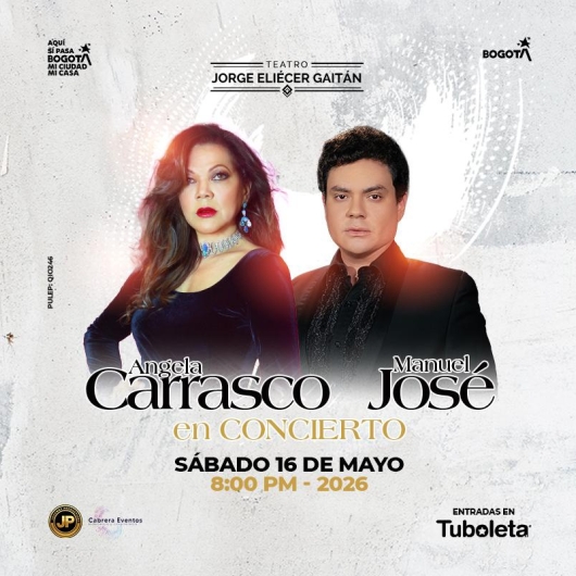 Destacados ROA | LATAM TOUR 2026 Royal Center Bogotá 15 Mayo Vie 15 Mayo PLANCHA SINFÓNICA EL TESORO Teatro El Tesoro Medellín 15 Mayo Vie 15 Mayo DIEGO EL CIGALA Teatro Jorge Eliécer Gaitán Bogotá 15 Mayo Vie 15 Mayo NATALIA LAFOURCADE Movistar Arena Bogotá 15 Mayo Vie 15 Mayo SILVESTRE & JUANCHO | EL BAILE DE TODOS Estadio El Campín Bogotá 15 Mayo Vie 15 Mayo OPERA QUEEN FILARMÓNICO CALI Teatro Municipal Enrique Buenaventura Cali 15 Mayo Vie 15 Mayo LOS AÑOS MARAVILLOSOS Teatro Cafam - Av. Car 68 No. 90 - 88 Bogotá Desde 15 Mayo Vie 15 Mayo Hasta 16 Mayo Sáb 16 Mayo ANGELA CARRASCO Y MANUEL JOSÉ Teatro Jorge Eliécer Gaitán Bogotá 16 Mayo Sáb 16 Mayo NELSON VELÁSQUEZ | 25 AÑOS DE CARRERA MUSICAL Movistar Arena Bogotá 16 Mayo Sáb 16 Mayo RITVALES RAIZ 2026 Jardín Botánico - Orquideorama Medellín 16 Mayo Sáb 16 Mayo Paginación « Primero Primera página ‹ Anterior Página anterior … 3 4 5 6 7 8 9 10 11 … Siguiente › Siguiente página Último » Última página