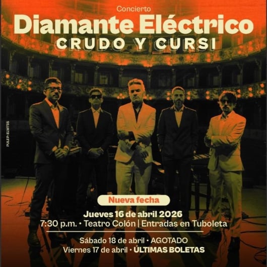 Diamante Eléctrico - Crudo y cursi Centro Nacional de las artes - Sala Teatro Colón cll10 #5-32 Bogotá Desde 16 Abr Jue 16 Abr Hasta 18 Abr Sáb 18 Abr