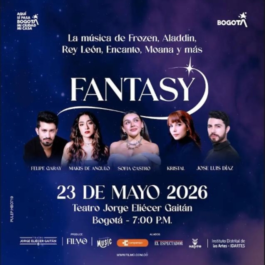 Destacados MIDORI GOTŌ & IEVA JOKUBAVIČIŪTÉ Teatro Metropolitano de Medellín Medellín 22 Mayo Vie 22 Mayo DON TETTO HISTORICO 2.0 Movistar Arena Bogotá 23 Mayo Sáb 23 Mayo KANY GARCÍA | TOUR 2026 - MEDELLÍN Diamante de Béisbol - Medellín Medellín 23 Mayo Sáb 23 Mayo FANTASY - BOGOTÁ Teatro Jorge Eliécer Gaitán Bogotá 23 Mayo Sáb 23 Mayo EL RITO DE SODA STEREO | UNPLUGGED - BUCARAMANGA Teatro Santander Bucaramanga 23 Mayo Sáb 23 Mayo Lanzamiento del XXX Festival Petronio Álvarez Teatro Mayor Julio Mario Santo Domingo Bogotá 23 Mayo Sáb 23 Mayo BUENA FE Teatro Colsubsidio Bogotá 23 Mayo Sáb 23 Mayo JHON ONOFRE EN CONCIERTO Teatro Cafam - Av. Car 68 No. 90 - 88 Bogotá 23 Mayo Sáb 23 Mayo Agrupaciones Filarmónicas Teatro Estudio - Julio Mario Santo Domingo Bogotá 24 Mayo Dom 24 Mayo Anamaría Oramas Cuarteto (Colombia), jazz Sala de Conciertos de la Biblioteca Luis Ángel Arango Bogotá 27 Mayo Mié 27 Mayo Paginación « Primero Primera página ‹ Anterior Página anterior … 6 7 8 9 10 11 12 13 14 … Siguiente › Siguiente página Último » Última página