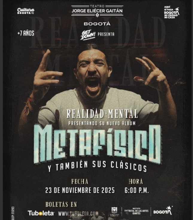 Destacados REALIDAD MENTAL EN BOGOTA Teatro Jorge Eliécer Gaitán Bogotá 23 Nov Dom 23 Nov Salsa y bolero con Juan Pablo Vega y sus cachacoletos Teatro Mayor Julio Mario Santo Domingo Bogotá 23 Nov Dom 23 Nov FONSECA SINFÓNICO 2025 - BOGOTÁ Teatro Jorge Eliécer Gaitán Bogotá 25 Nov Mar 25 Nov BILLY IDOL | IT´S A NICE DAY TO... TOUR AGAIN (CANCELADO) Movistar Arena Bogotá 25 Nov Mar 25 Nov FONSECA SINFÓNICO 2025 - MEDELLÍN Teatro Metropolitano de Medellín Medellín 26 Nov Mié 26 Nov ESPAÑA, FANTASÍA SINFÓNICA Teatro Fundadores Manizales 26 Nov Mié 26 Nov PLANCHANDO EL DESPECHO Teatro Astor Plaza Bogotá Desde 26 Nov Mié 26 Nov Hasta 28 Nov Vie 28 Nov Mostrar más eventos