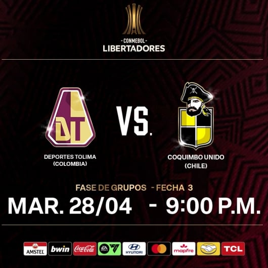 Destacados Tolima vs Coquimbo 2026-1 Estadio Manuel Murillo Toro Ibagué 28 Abr Mar 28 Abr Envigado FC VS Tigres FC 2026-1 Polideportivo Sur Envigado 29 Abr Mié 29 Abr ONCE CALDAS VS ATLETICO NACIONAL 2026-1 Estadio Palogrande Manizales 02 Mayo Sáb 02 Mayo SANTA FE VS INTERNACIONAL DE BOGOTÁ 2026-1 Estadio El Campín Bogotá 03 Mayo Dom 03 Mayo SANTA FE VS CORINTHIANS 2026-1 Estadio El Campín Bogotá 06 Mayo Mié 06 Mayo THE FAMILY RUN FESTIVAL 2026 Parque La Marina Cartagena 24 Mayo Dom 24 Mayo Latam vs Europa (Ronaldinho Gaúcho) Estadio El Campín Bogotá 14 Nov Sáb 14 Nov