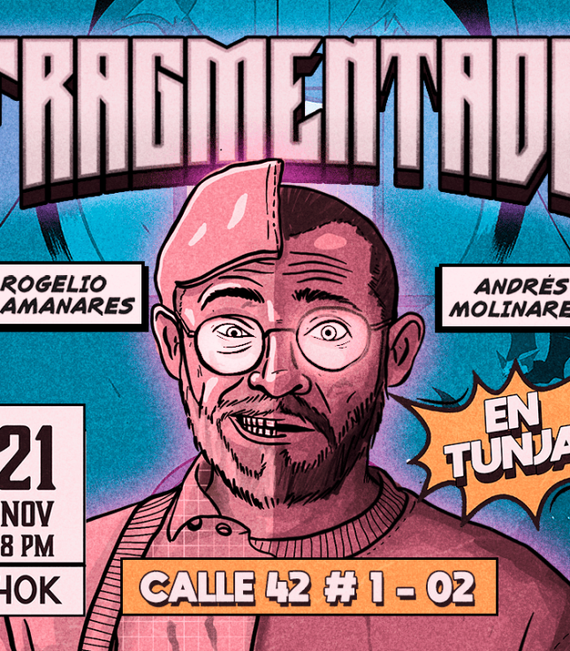 Destacados AMANDO A JOHNNIE ODIANDO A WOODY - GORDCONSEJOS - MEDELLÍN BOOM STAND UP BAR - Cl. 26 #43g-30 BARRIO COLOMBIA Medellín 21 Nov Vie 21 Nov Gato por liebre Teatro Escuela Bucaramanga Desde 21 Nov Vie 21 Nov Hasta 22 Nov Sáb 22 Nov ENCUENTRO DE SONIDOS ELECTRÓNICOS: CIRCOTRÓNIKA Teatro el Ensueño - Tv 70 D # 60 - 90 sur, Bogotá Bogotá 21 Nov Vie 21 Nov FRAGMENTADO - TUNJA Calle 42 # 1 - 02 Terraza Comedy House - TUNJA Tunja 21 Nov Vie 21 Nov Encuentro de Sonidos Electrónicos 2025 Teatro Jorge Eliécer Gaitán Bogotá 21 Nov Vie 21 Nov AMANDO A JOHNNIE ODIANDO A WOODY - GORDCONSEJOS (MEDELLIN) BOOM STAND UP BAR - Cl. 26 #43g-30 BARRIO COLOMBIA Medellín 22 Nov Sáb 22 Nov Encuentro de Sonidos Electrónicos 2025 Teatro Jorge Eliécer Gaitán Bogotá 22 Nov Sáb 22 Nov Mostrar más eventos Movistar Arena Dg. 61c #26-36, Teusaquillo Teatro Julio Mario Santodomingo Cl. 170 #67-51 Teatro Colsubsidio Av. El Dorado #25-40, Bogotá Maloka Centro Interactivo Maloka, Cra. 68d #24A - 51 Teatro CAFAM Ak 68 #90 - 88 Centro Nacional de las Artes Cl. 11 #5 - 60 Teatro Metropolitano Cl. 41 # 57 - 30, La Candelaria, Medellín. Teatro El Tesoro Carrera 25A # 1A Sur - 45 Medellín. Teatro El Ensueño Tv. 70 D #60-90, Sur, Bogotá Teatro Jorge Eliécer Gaitán Cra. 7 #22-47, Santa Fé, Bogotá. Teatro La Concha Calle 4 #10-48, Cali