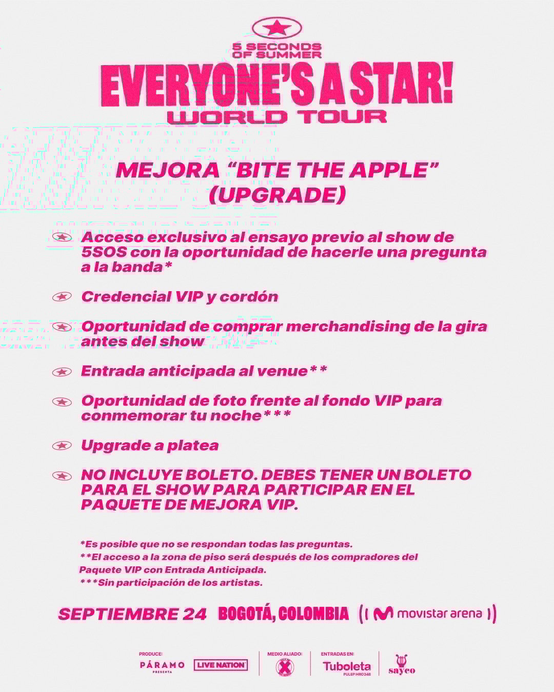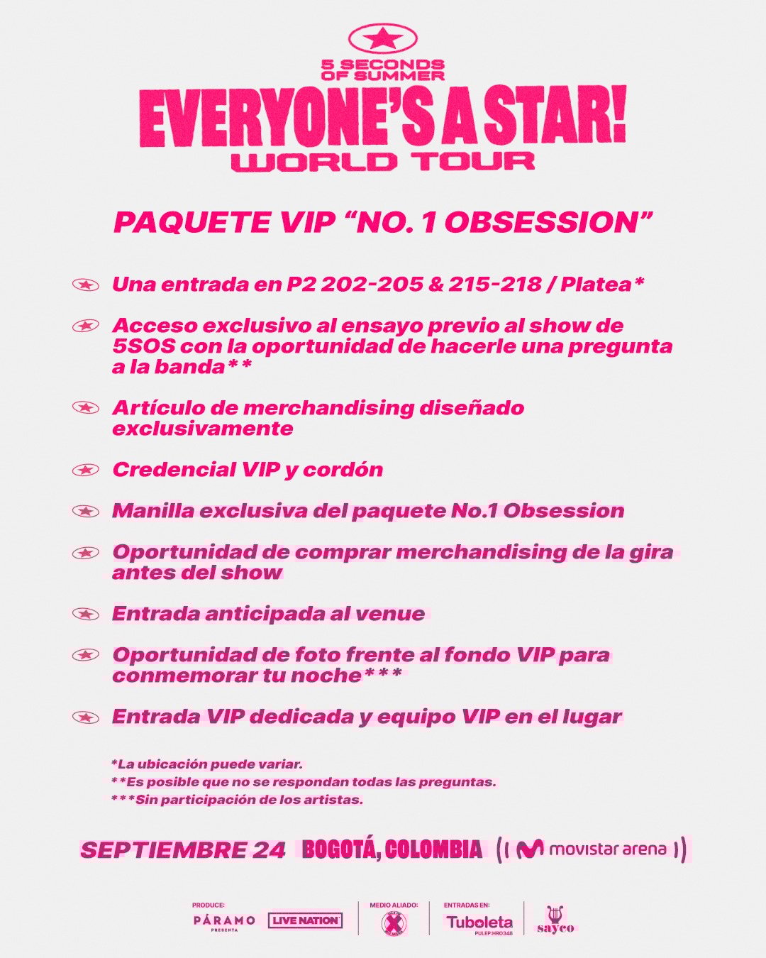 ¡Prepárate para una noche inolvidable! 5 Seconds of Summer regresa a Colombia el 24 de septiembre de 2026 en el Movistar Arena, Bogotá en el Marco de su gira Mundial ¨Everyone´s A Star World Tour¨.