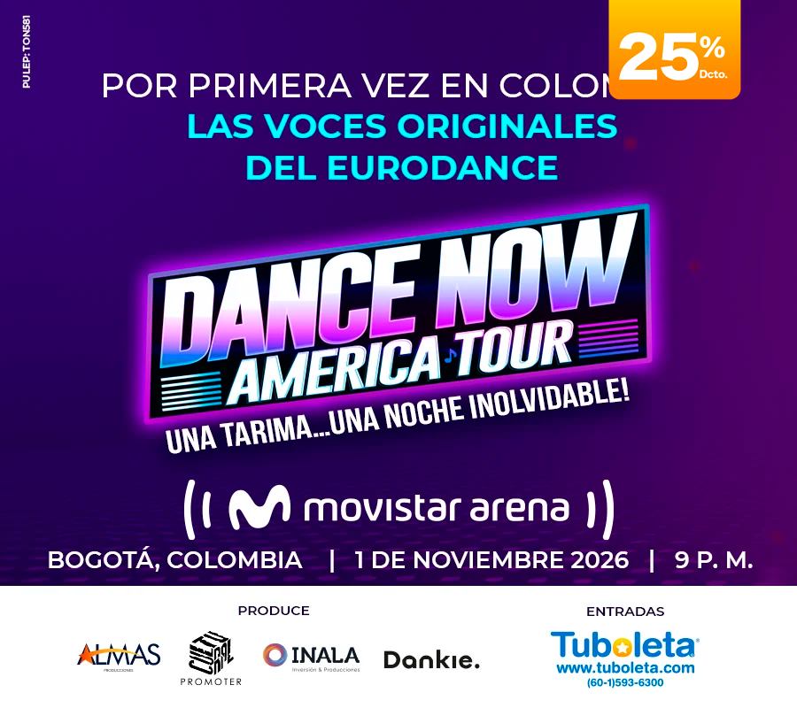 DANCE NOW TOUR 2026, el festival que es tendencia mundial llega a Bogotá. Una noche única e irrepetible con lo mejor de los noventa. Presentaciones en vivo con 10 artistas originales en escena.