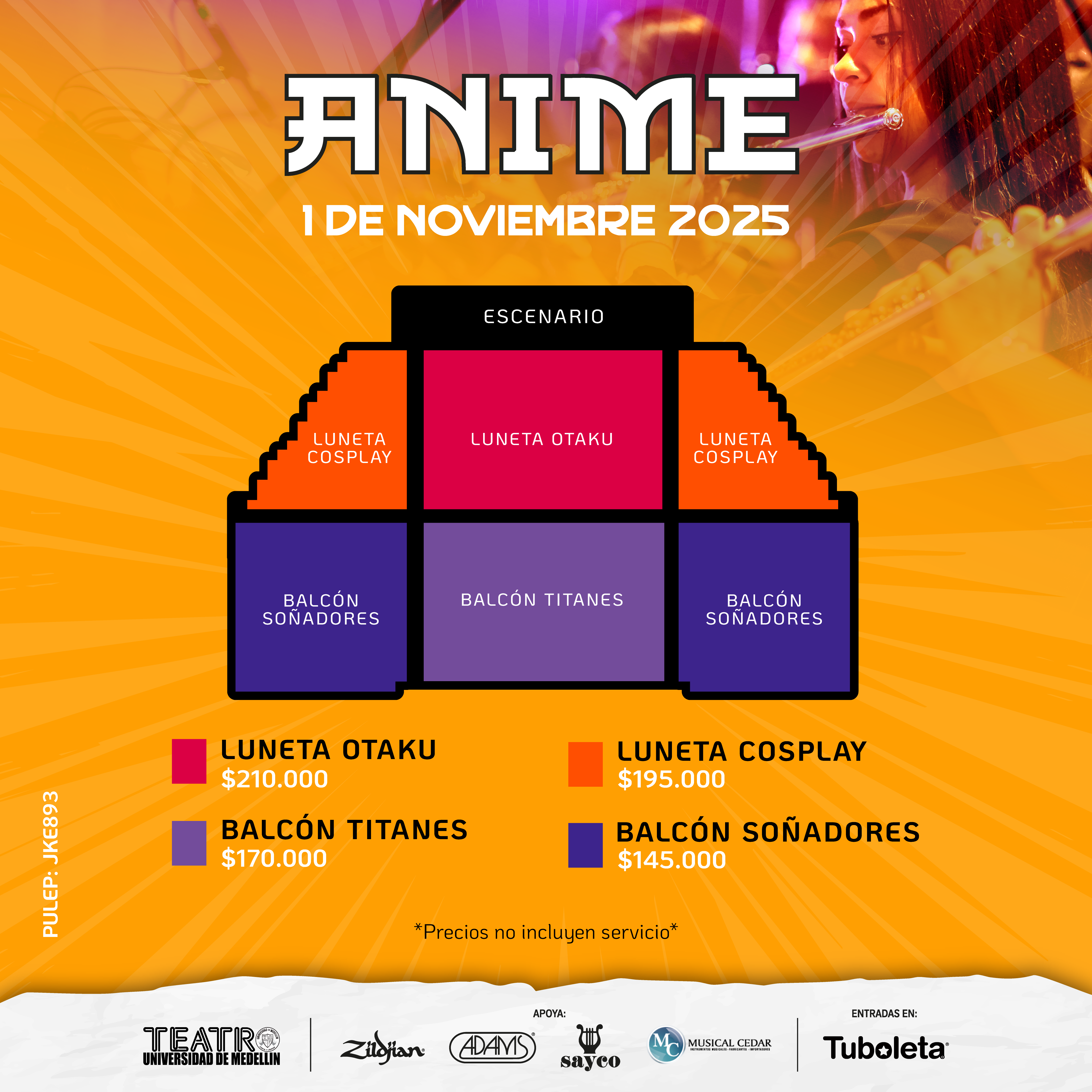 | Platea cosplay | Silletería Numerada | $195.000 + $25.600 | 358 |