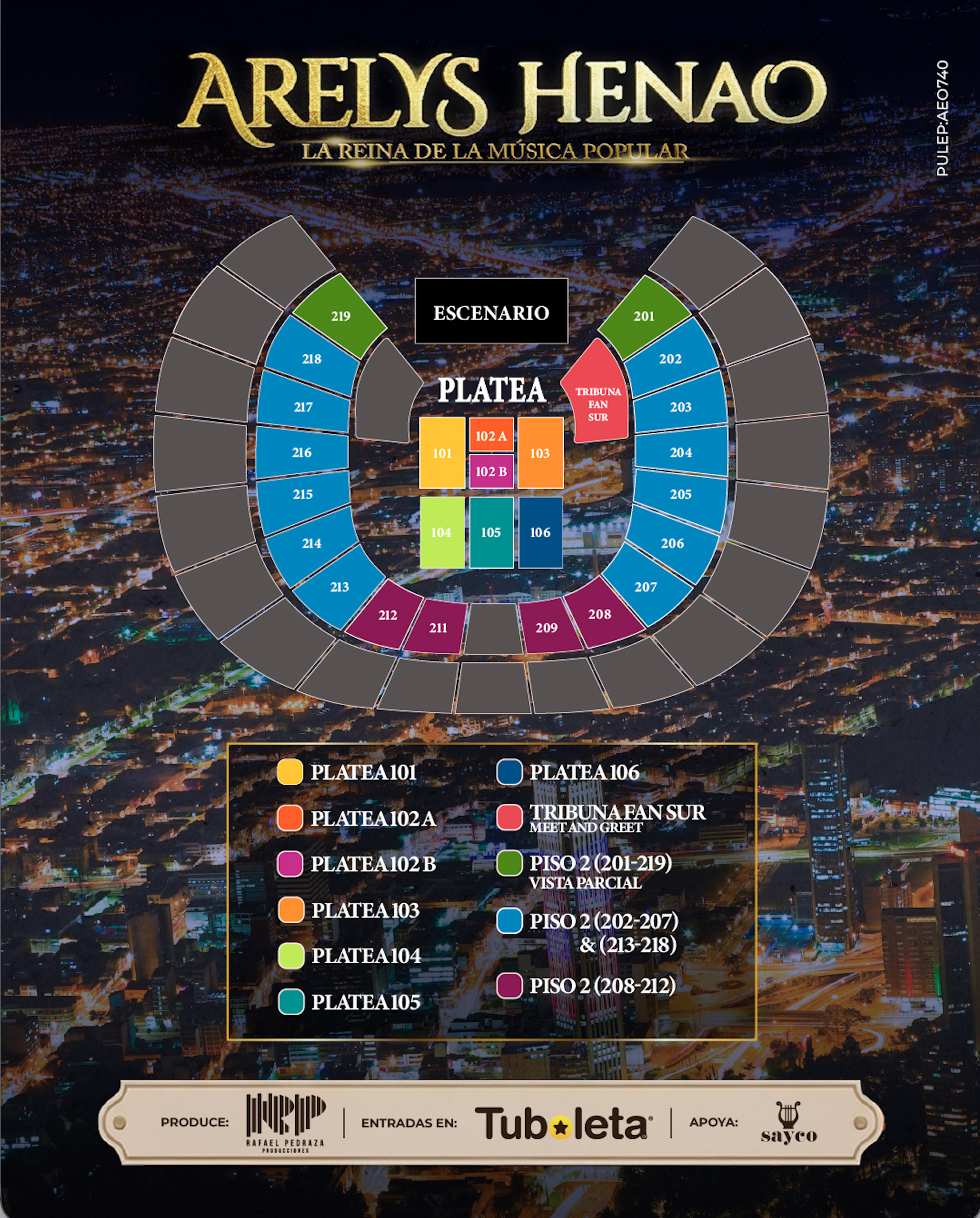 Medios de pago: Disponible con todos los medios de pago y todos los canales de venta autorizados de Tuboleta. Boletería a la venta: según aforo* disponible hasta agotar existencias. Máximo 6 boletas por transacción.