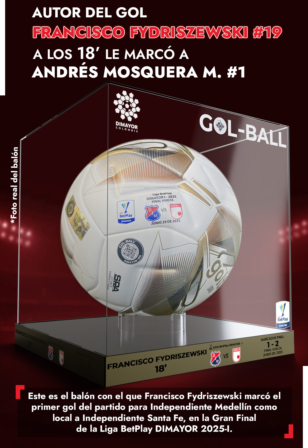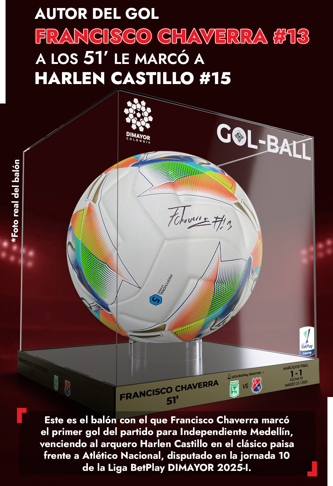 - Sticker tornasol con información del partido correspondiente a ese balón (fecha, equipos, resultado)