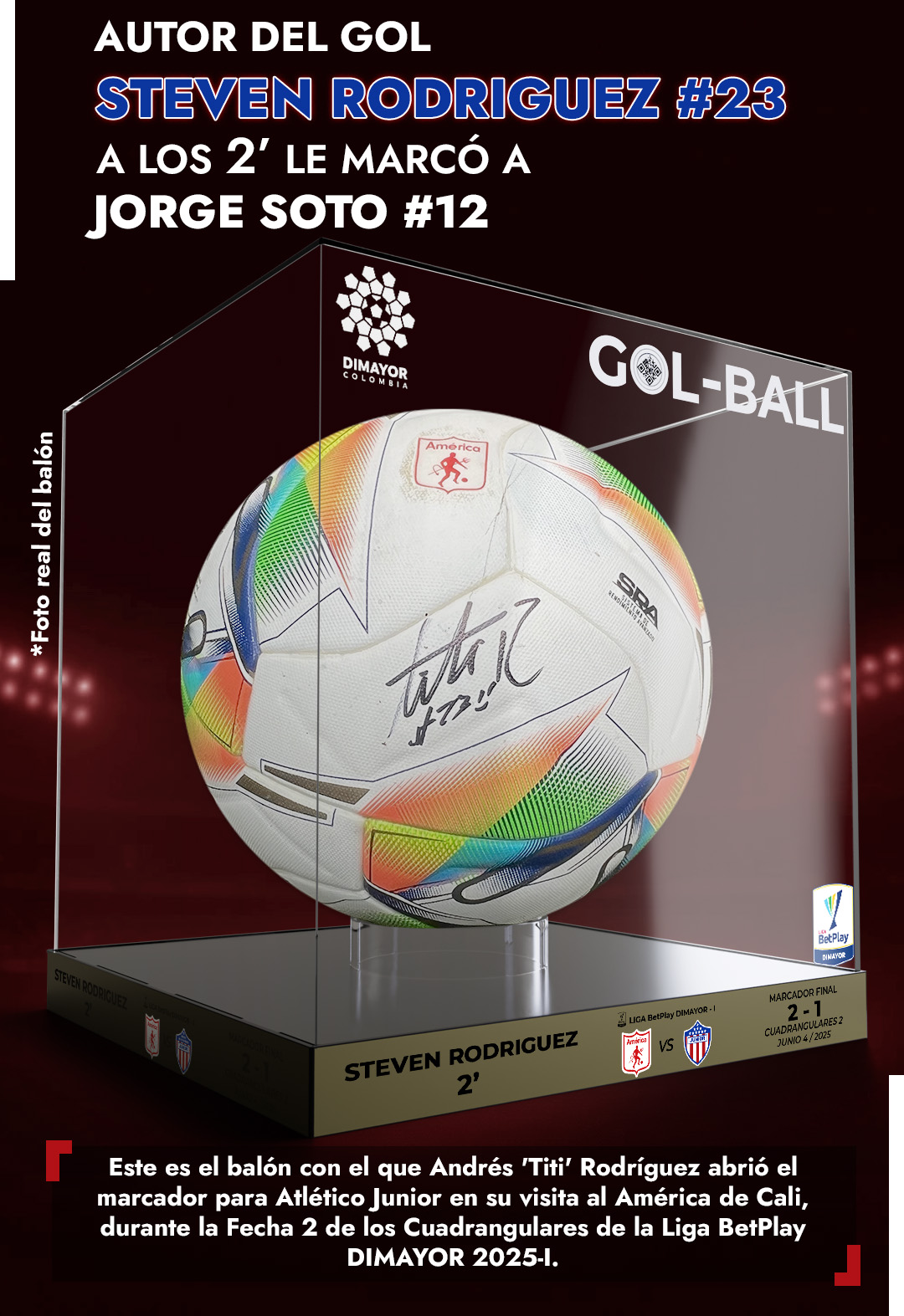 - Sticker tornasol con información del partido correspondiente a ese balón (fecha, equipos, resultado)