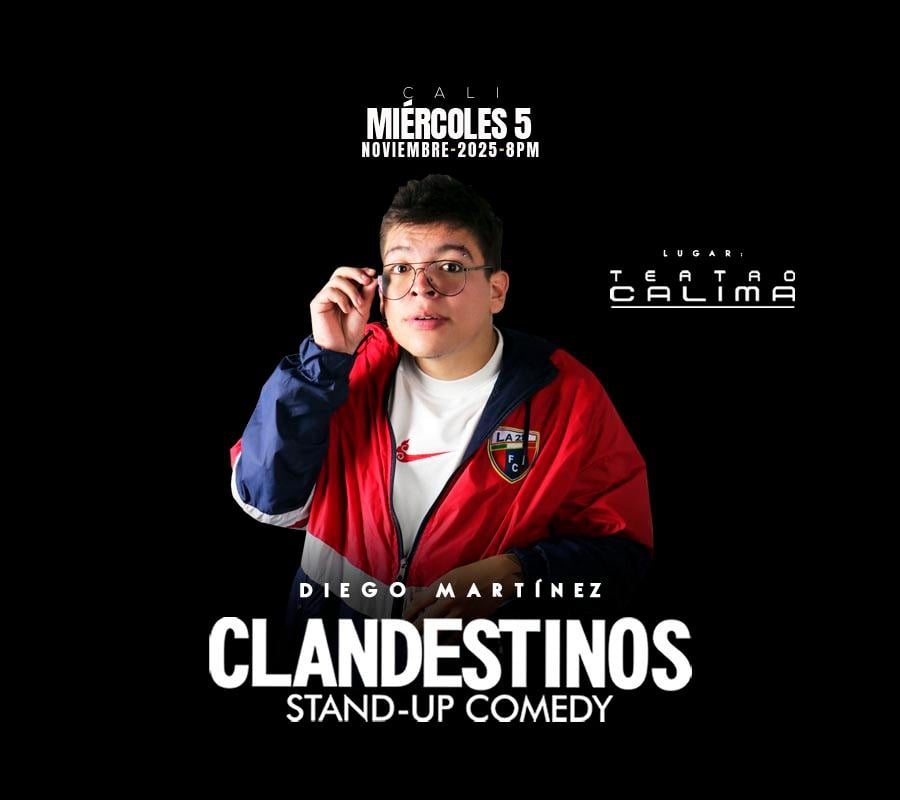 Clandestinos Stand-up comedy ¡El proyecto mas ambicioso de comedia en Colombia! Los mejores comediantes de stand-up comedy, estaran en el Teatro Calima temporada de un mes, exponiendo su show al publico.. desde el 2018 a su nueva temporada del 2021. y aun en 2025 con este gran proyecto de darle visibilidad a los grandes comediantes del pais.