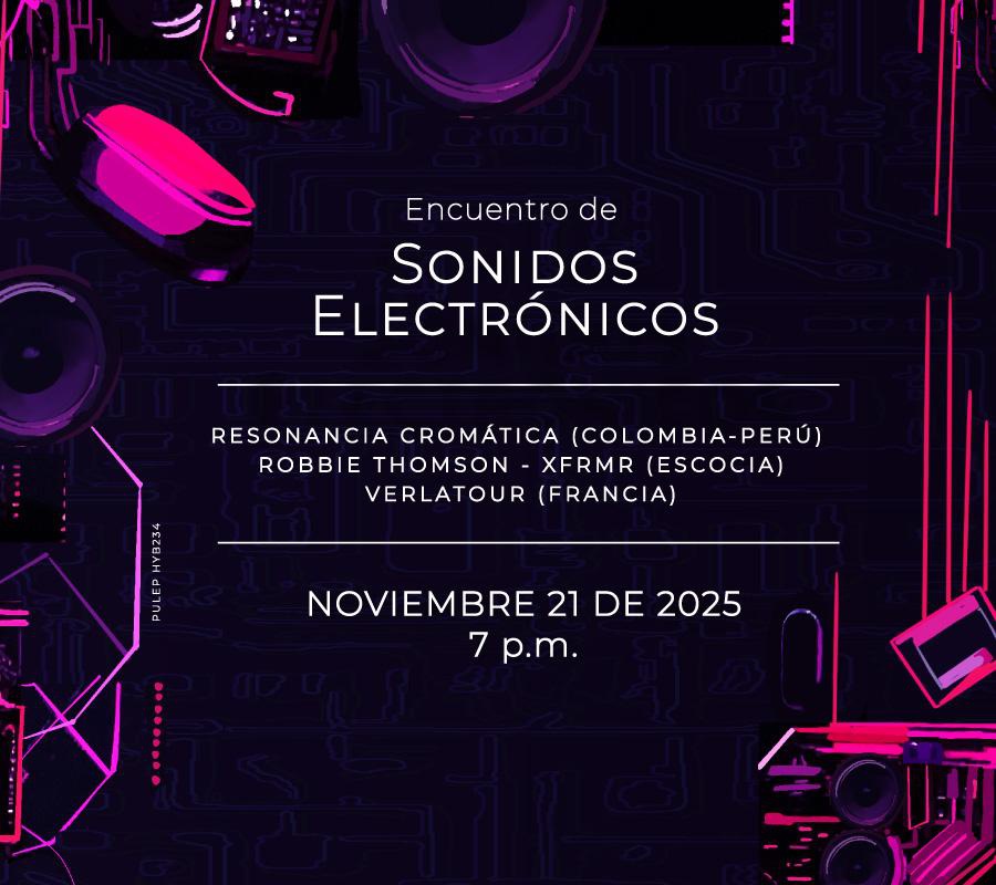 El viernes 21 de noviembre, el Teatro Jorge Eliécer Gaitán será el epicentro de una noche de innovación sonora y visual en el marco del Encuentro de Sonidos Electrónicos 2025. A partir de las 8:00 p.m., el escenario se transformará en un laboratorio vivo donde convergen las texturas sonoras y lumínicas de Resonancia Cromática (Colombia), la potencia audiovisual de Robbie Thomson – XFRMR (Reino Unido) y la energía electro-performática de Verlatour (Francia).