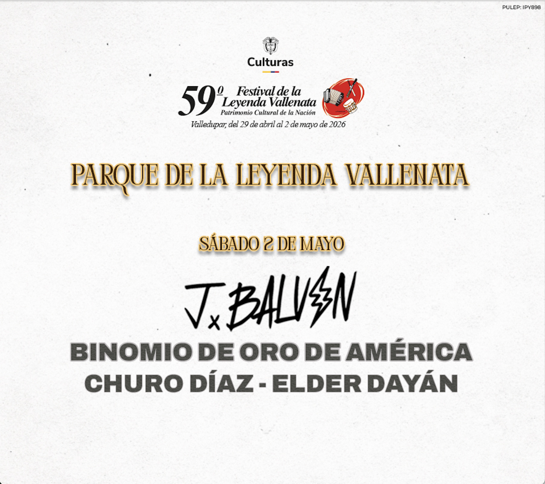 A su lado estará el ícono global J Balvin, embajador urbano de Colombia ante el mundo, quien llega para ofrecer un espectáculo de talla internacional al público del Festival Vallenato. Su participación demuestra la apertura, evolución y fuerza de este encuentro musical, consolidándolo como un festival que celebra sus raíces mientras abraza la modernidad.