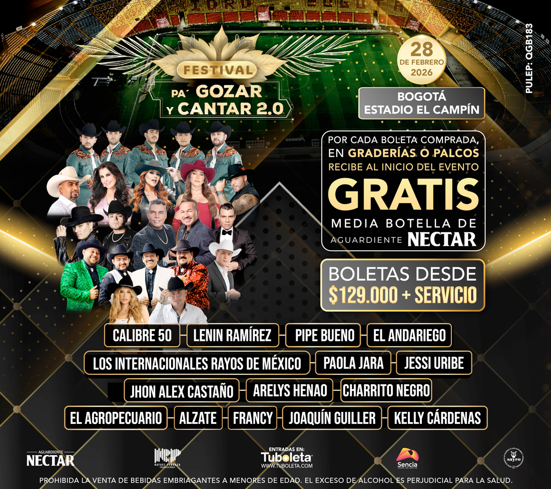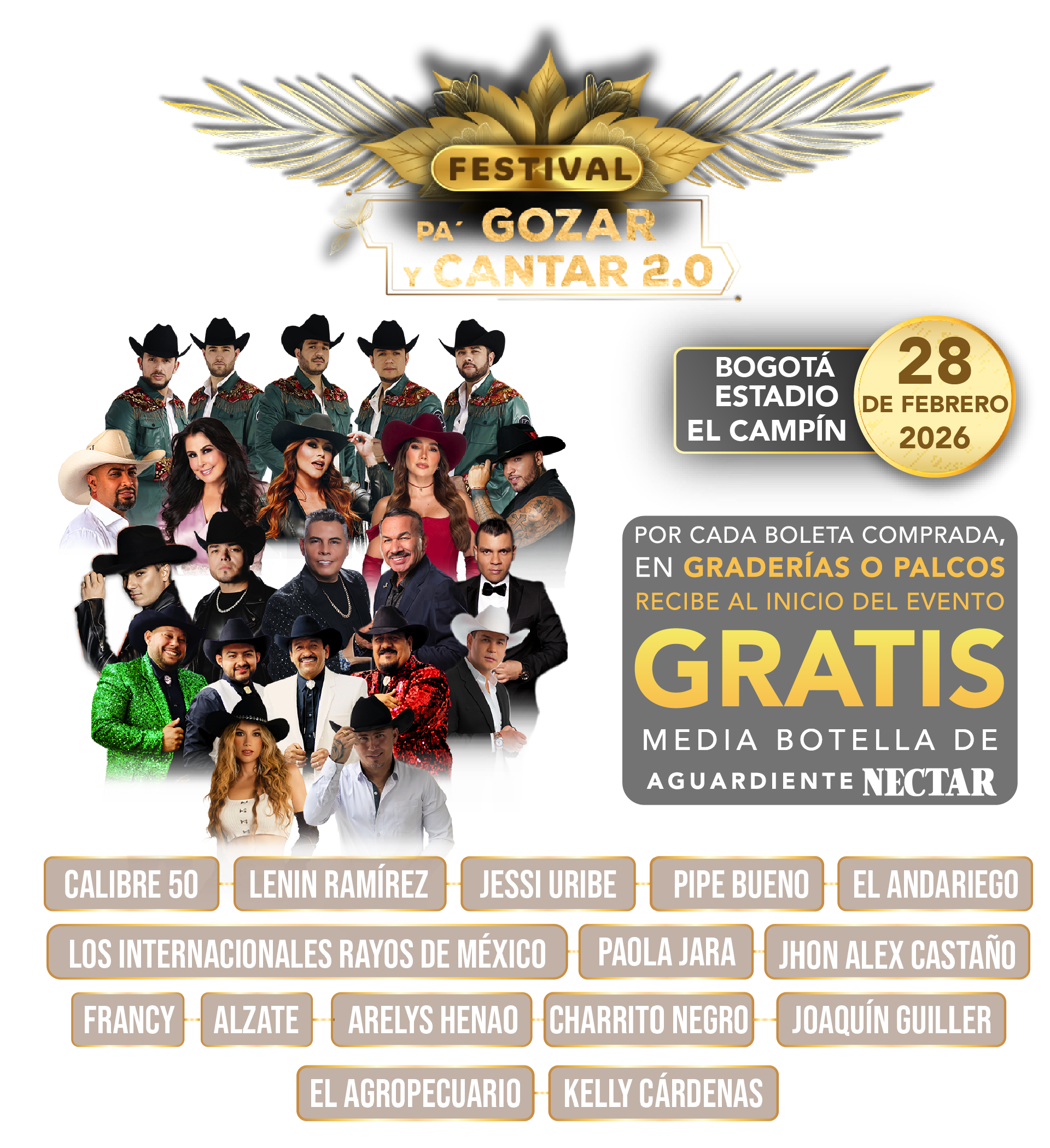Después de un Sold Out en 2023, vuelve el Festival Pa Gozar y Cantar 2.0, este 28 de Febrero llega la segunda edición del festival de música popular más grande de Colombia.