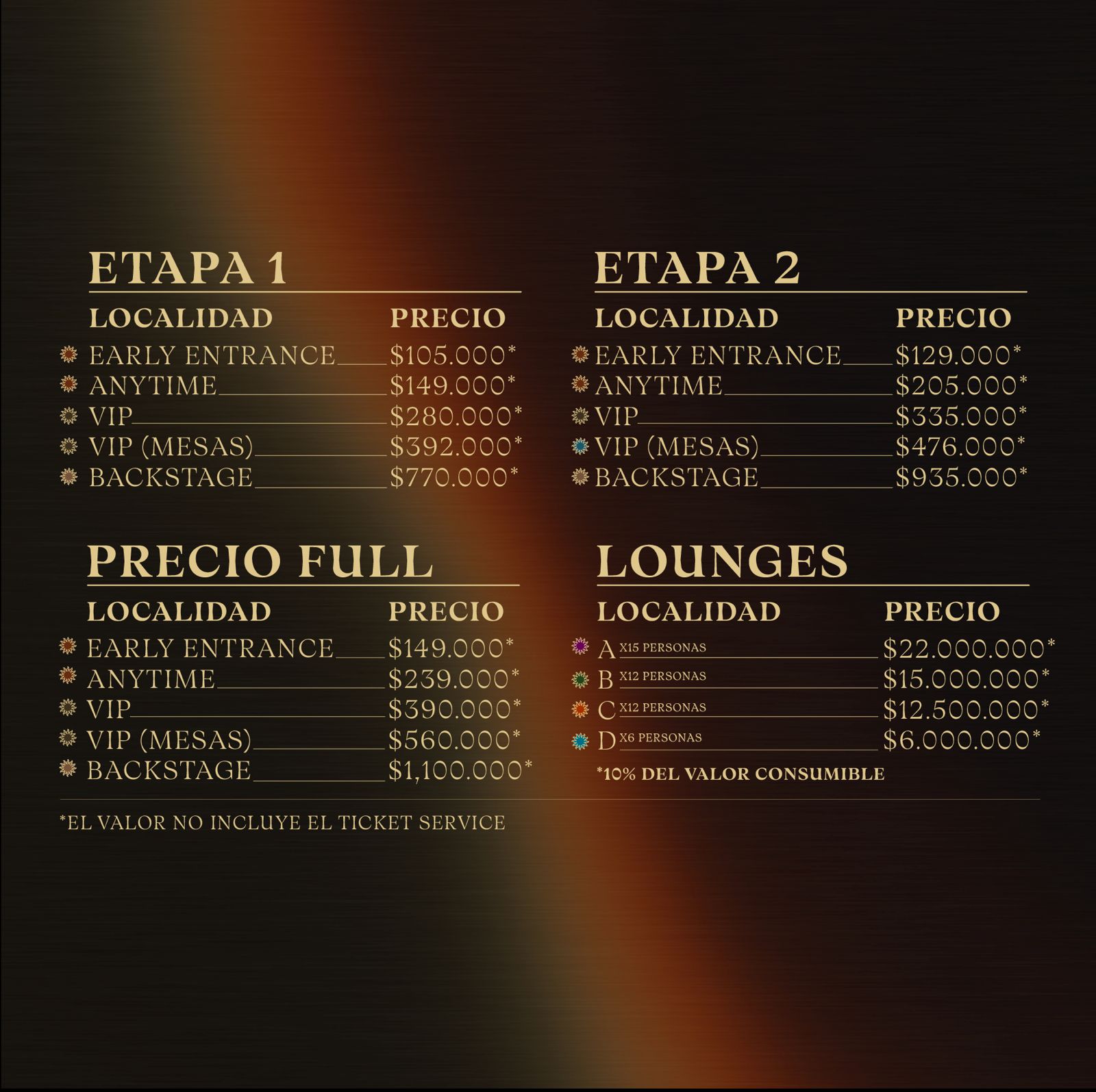 VIP (mesas) | $560.000 + $81.100 | 24 |
