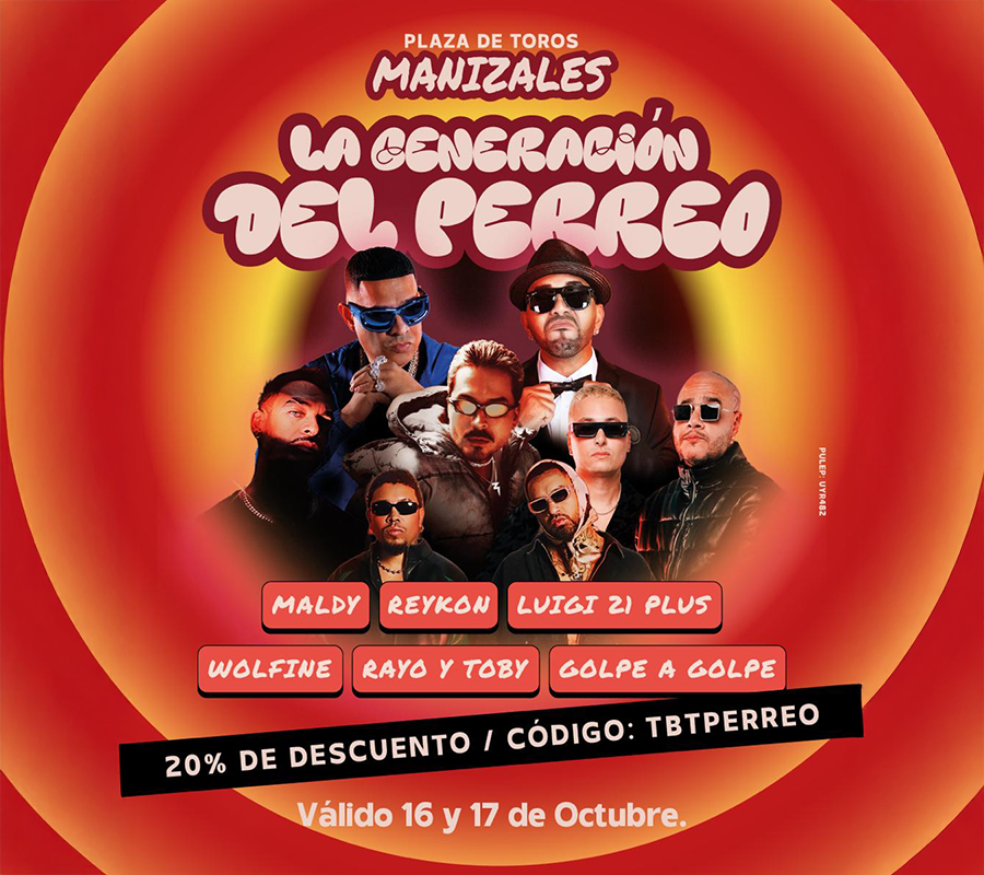Por primera vez, la Plaza de Toros de manizales se enciende con “La Generación del Perreo”, el show que revive la música que marcó nuestra adolescencia y que nunca dejó de sonar.