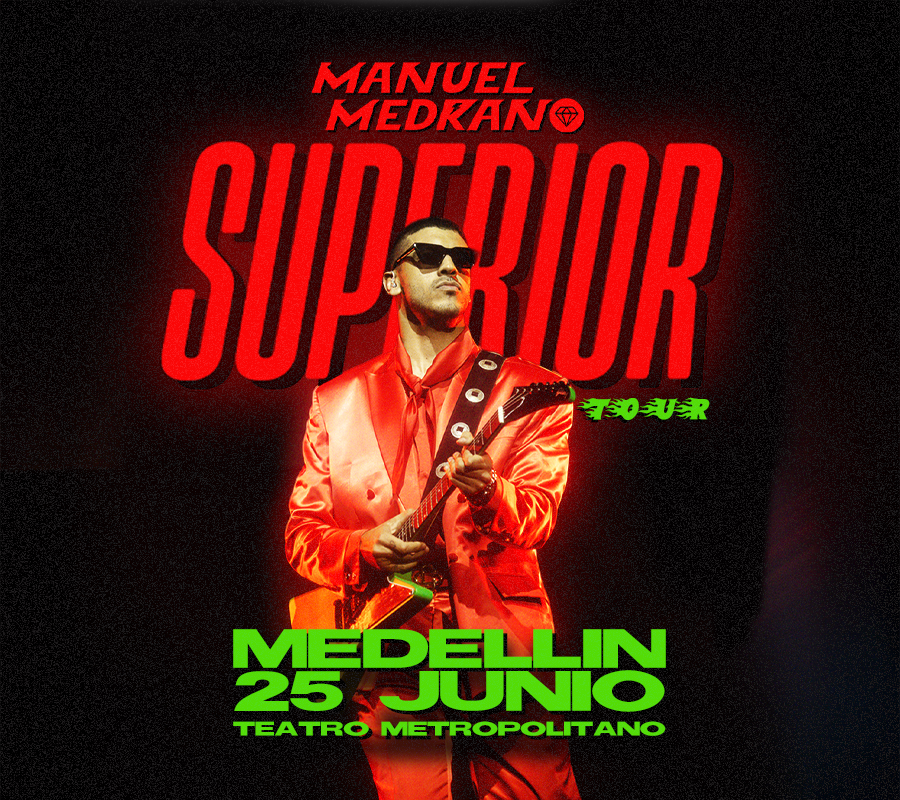 El reconocido cantautor colombiano Manuel Medrano llega con su esperado SUPERIOR TOUR, una gira que marca una nueva etapa en su carrera artística.