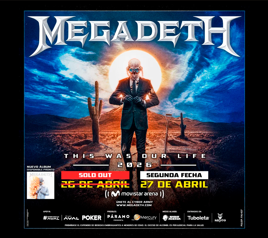 El próximo 27 de abril de 2026, el Movistar Arena de Bogotá será testigo de una noche histórica donde Dave Mustaine y su banda entregarán toda su fuerza, velocidad y legado en un show irrepetible. ¡La última oportunidad para vivir a Megadeth en vivo en Colombia!