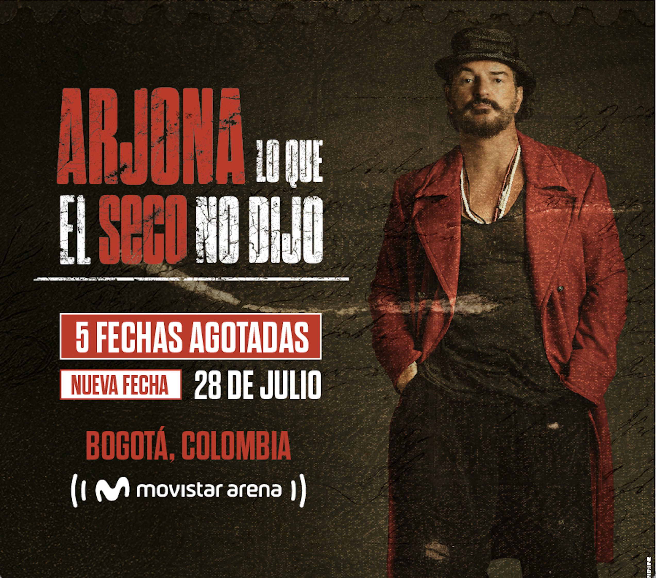 El 28 de julio, el Movistar Arena vuelve a ser escenario de “Lo Que el Seco No Dijo”, un encuentro cercano con sus relatos urbanos, emociones a flor de piel y canciones que han acompañado a varias generaciones, en un formato pensado para sentir cada historia de manera directa.