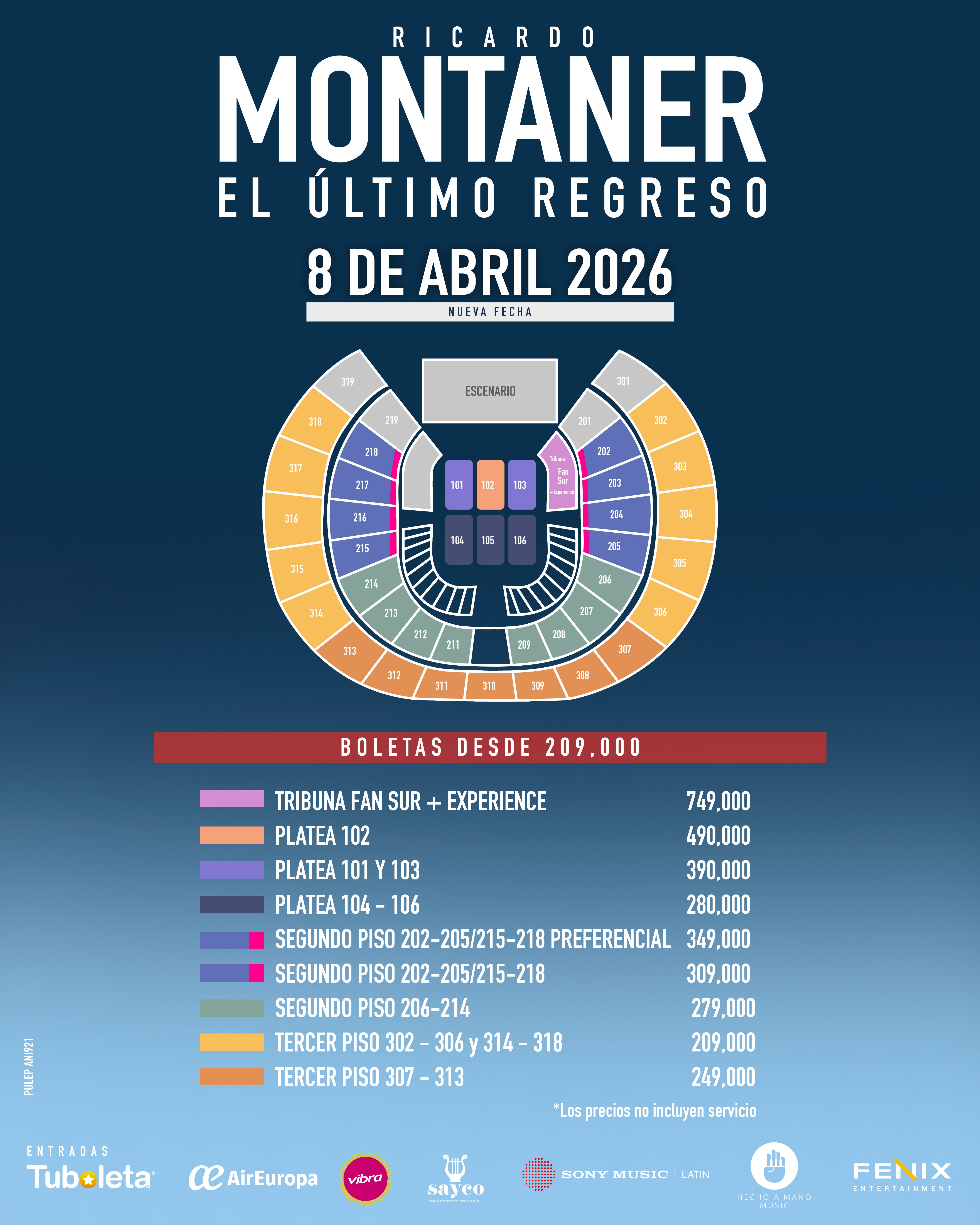El 8 de abril de 2026, el Movistar Arena de Bogotá abrirá nuevamente sus puertas para recibir a Ricardo Montaner, quien suma una segunda fecha de su aclamado espectáculo “El Último Regreso Tour”, tras el éxito en ventas de su primera presentación en la capital.