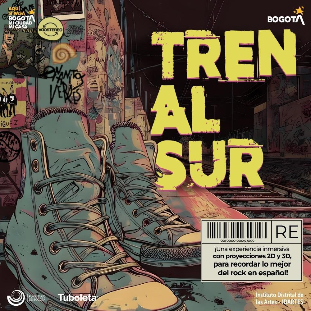 Un recorrido musical en español que viaja por la historia del rock que marcó generaciones. Tren al Sur reúne canciones emblemáticas que, bajo la cúpula del Planetario de Bogotá, se transforman en un viaje inmersivo de luz, sonido y memoria.