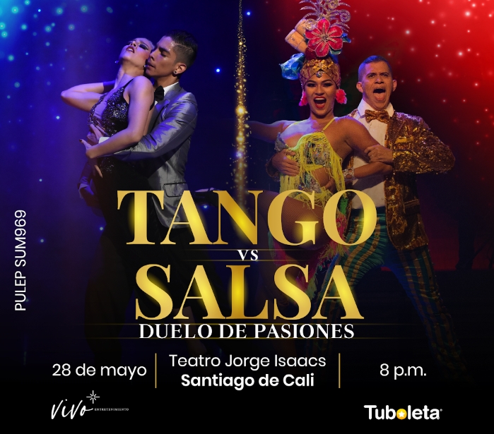 TANGO VS SALSA – “Duelo de Pasiones” Un espectacular mano a mano de campeones donde dos gigantes de la danza se enfrentan en escena para celebrar, desde la pasión, la fuerza y el arte, la grandeza de nuestras culturas. Esta puesta en escena fusiona lo mejor de la salsa caleña y la cultura latina con el tango y la milonga, ritmos cargados de mística, ganchos y firuletes, en un duelo vibrante que despierta todos los sentidos.