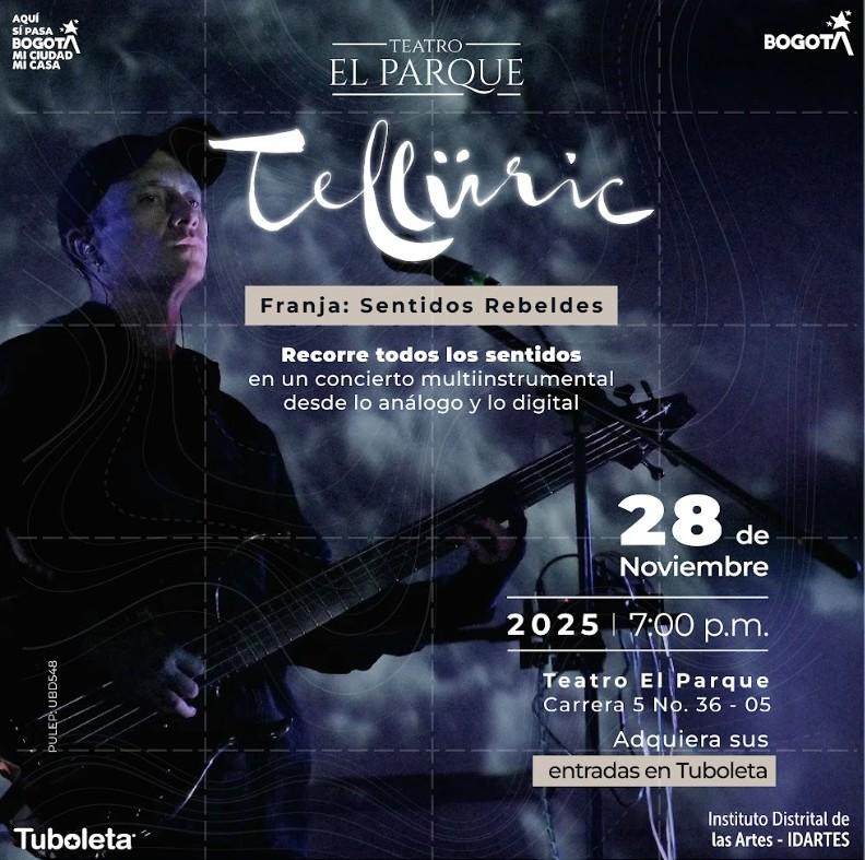 El 28 de noviembre de 2025 a las 7:00 p.m., el Teatro El Parque será escenario de una experiencia sonora y visual única con la presentación de Tellüric, en el marco de la franja Sentidos Rebeldes.