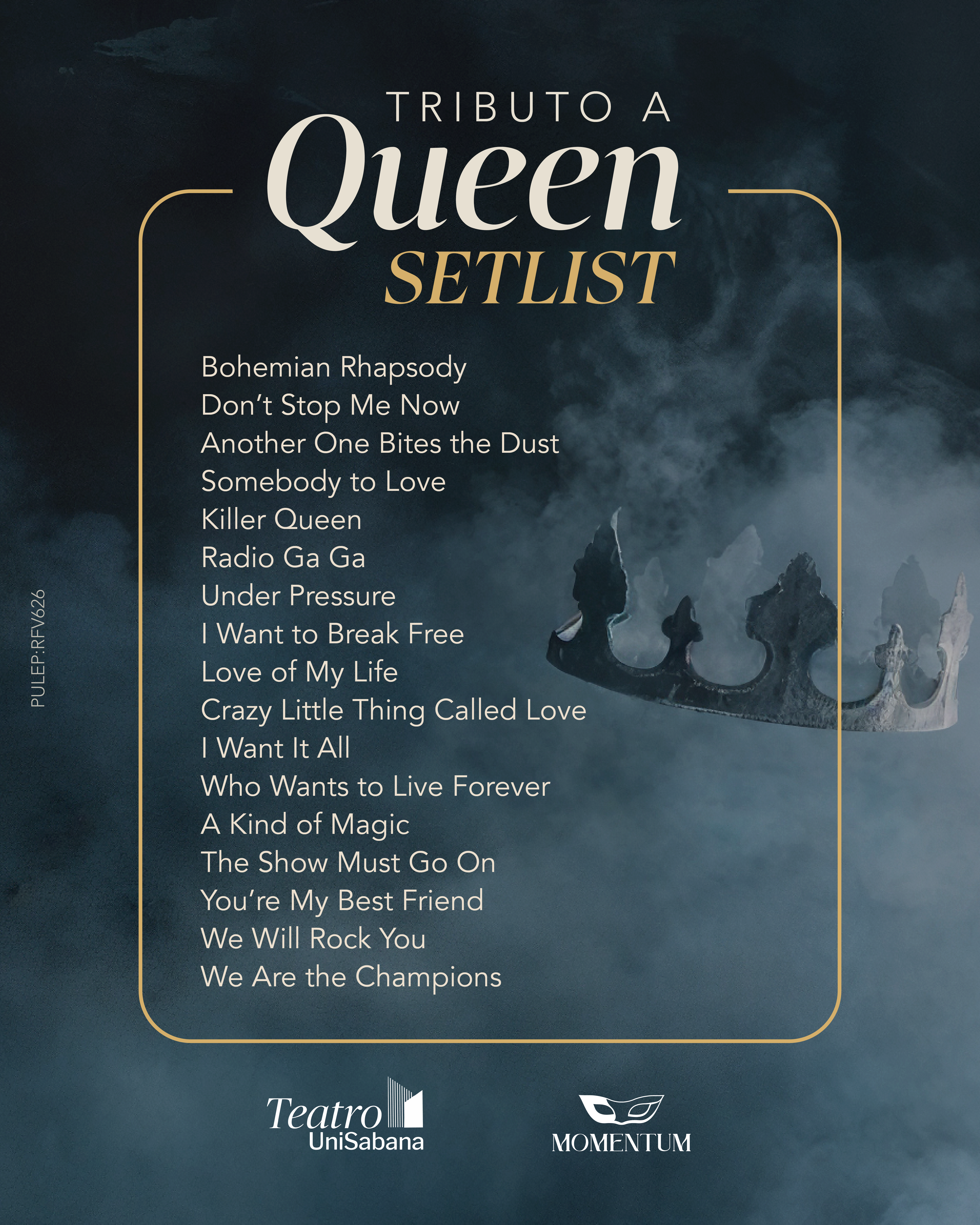 Como parte del universo conceptual de Momentum, el espectáculo integra el ritual “Reflexiones”, una acción performativa que amplía la vivencia musical y genera una conexión emocional profunda entre los intérpretes y la audiencia. Con una duración aproximada de 90 minutos, Tributo a Queen se presenta como una propuesta innovadora y memorable, ideal para disfrutar de la música de Queen desde una perspectiva artística contemporánea, íntima y altamente envolvente.