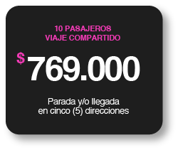 - El viaje para 1 pasajero es compartido por lo cual tu recorrido será con más personas, vmove se comunicará contigo indicándote la hora de recogida