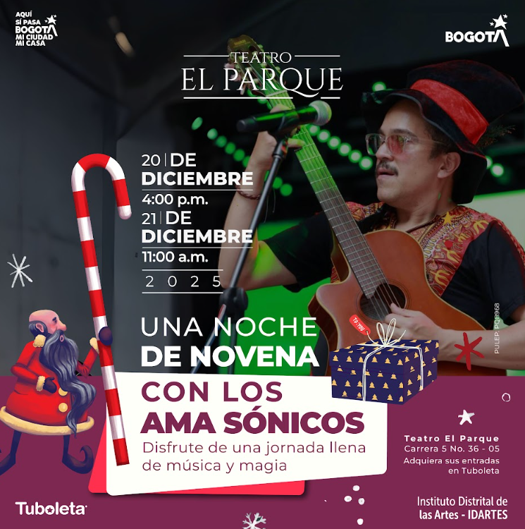 Como parte de la celebración navideña del Teatro El Parque, los días 20 y 21 de diciembre se presentará “Una Noche de Novena con los Ama-Sónicos”, una obra familiar que une la magia de la Navidad con la riqueza cultural de la Amazonía. En la noche del cumpleaños de Dyawe —el venado para el pueblo tikuna— coincide el nacimiento del Espíritu de la Selva y del Espíritu de la Navidad, marcando el inicio de una aventura inolvidable.