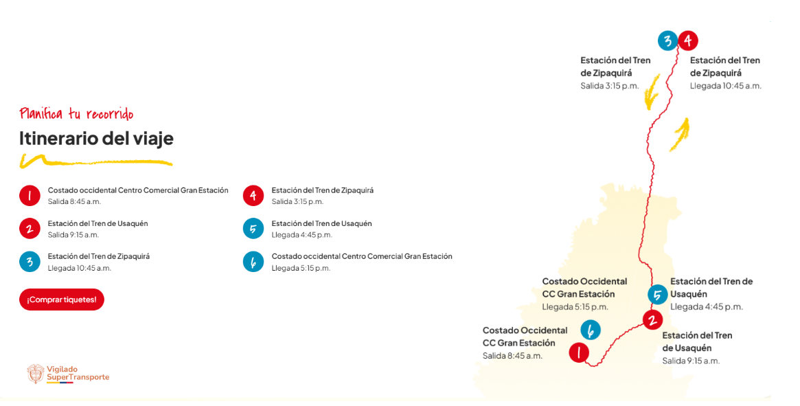 - El recorrido sólo se puede iniciar en Bogotá y no vendemos un solo trayecto.