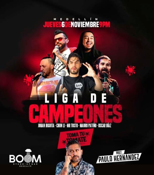LIGA DE CAMPEONES - RAFA LOPEZ (06 NOV) BOOM STAND UP BAR - Cl. 26 #43g-30 BARRIO COLOMBIA Medellín 06 Nov Jue 06 Nov