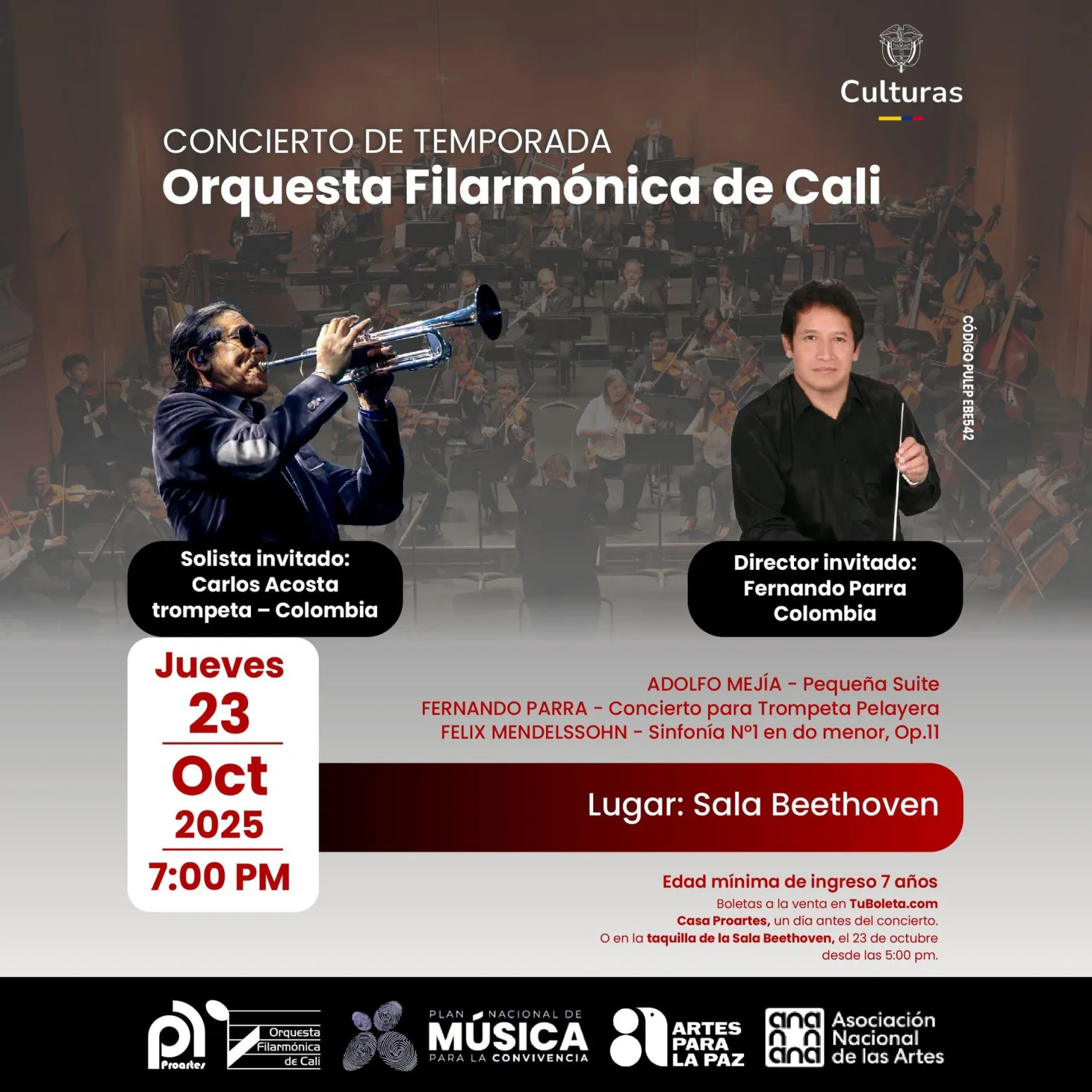 Destacados CONCIERTO PARA PIANO NO.2 OP.18 EN DO MENOR Auditorio Fabio Lozano Bogotá 12 Oct Dom 12 Oct Marco Tamayo (Cub, Aut) - Raúl Fernando Madrid (Col) Teatro Colsubsidio Bogotá 15 Oct Mié 15 Oct ZORAN DUKIC (HRV) - CESAR QUEVEDO (COL) Teatro Colsubsidio Bogotá 16 Oct Jue 16 Oct JOVENES GUITARRISTAS DE LATINOAMERICA Teatro Colsubsidio Bogotá 19 Oct Dom 19 Oct JP SAXE | MAKE YOURSELF AT HOME TOUR (CANCELADO) Royal Center Bogotá 20 Oct Lun 20 Oct RAPSODIA GALA INTERNACIONAL DE BALLET Y ÓPERA - PEREIRA Teatro Santiago Londoño Pereira 21 Oct Mar 21 Oct CONCIERTO DE TEMPORADA - 23 de Oct SALA BEETHOVEN - Cali Cali 23 Oct Jue 23 Oct Mostrar más eventos