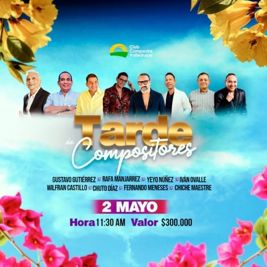 Destacados J BALVIN MADE IN BARRANQUILLA Estadio Romelio Martinez Barranquilla 01 Mayo Vie 01 Mayo Orquesta Aragón Teatro Colsubsidio Bogotá 01 Mayo Vie 01 Mayo EDEN MUÑOZ Movistar Arena Bogotá 02 Mayo Sáb 02 Mayo Celebre el día de la madre con Alci Acosta Teatro Colsubsidio Bogotá 02 Mayo Sáb 02 Mayo LA VERBENA DE LA GENTE by BIBLOS FESTIVAL & MOY’S Biblos Car Wash Valledupar 02 Mayo Sáb 02 Mayo MARVEL VS DC COMIC Teatro Mayor Julio Mario Santo Domingo Bogotá 02 Mayo Sáb 02 Mayo NOCHE DE GALA HOMENAJE A LAS MADRES - MANIZALES Teatro Fundadores Manizales 02 Mayo Sáb 02 Mayo LA SOLAR 2026 Parque Norte Medellín 02 Mayo Sáb 02 Mayo HOMENAJE A NINO BRAVO - SINFÓNICO Teatro Jorge Eliécer Gaitán Bogotá 02 Mayo Sáb 02 Mayo TARDE DE COMPOSITORES CLUB CAMPESTRE CLUB CAMPESTRE DE VALLEDUPAR Valledupar 02 Mayo Sáb 02 Mayo Paginación « Primero Primera página ‹ Anterior Página anterior … 6 7 8 9 10 11 12 13 14 … Siguiente › Siguiente página Último » Última página