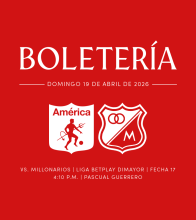 AMÉRICA DE CALI VS MILLONARIOS 2026-1 Estadio Pascual Guerrero Cali 19 Abr Dom 19 Abr AMÉRICA DE CALI VS MILLONARIOS 2026-1 Cali 29 Mar Dom