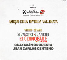 FESTIVAL DE LA LEYENDA VALLENATA 2026 Parque de la Leyenda Vallenata Valledupar 1 Mayo Vie 1 Mayo FESTIVAL DE LA LEYENDA VALLENATA 2026 Valledupar 31 Ene Sáb