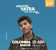 SEBASTIAN YATRA | ENTRE TANTA GENTE TOUR Movistar Arena Bogotá 25 Abr Sáb 25 Abr SEBASTIAN YATRA | ENTRE TANTA GENTE TOUR Bogotá 29 Mar Dom