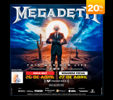 MEGADETH | THIS WAS OUR LIFE Movistar Arena Bogotá 26 Abr Dom 26 Abr MEGADETH | THIS WAS OUR LIFE Bogotá 29 Mar Dom