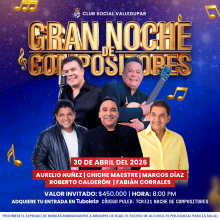 GRAN NOCHE DE COMPOSITORES CLUB SOCIAL VALLEDUPAR Valledupar 30 Abr Jue 30 Abr GRAN NOCHE DE COMPOSITORES Valledupar 29 Mar Dom