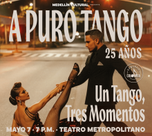 A PURO TANGO, 25 AÑOS: UN TANGO, TRES MOMENTOS Teatro Metropolitano de Medellín Medellín 7 Mayo Jue 7 Mayo A PURO TANGO, 25 AÑOS: UN TANGO, TRES MOMENTOS Medellín 29 Mar Dom