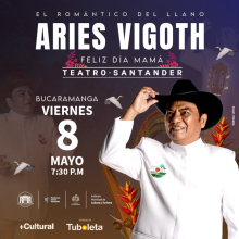 ARIES VIGOTH - EL ROMÁNTICO DEL LLANO Teatro Santander Bucaramanga 8 Mayo Vie 8 Mayo ARIES VIGOTH - EL ROMÁNTICO DEL LLANO Bucaramanga 29 Mar Dom