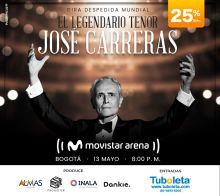 JOSÉ CARRERAS | GIRA DESPEDIDA MUNDIAL Movistar Arena Bogotá 13 Mayo Mié 13 Mayo JOSÉ CARRERAS | GIRA DESPEDIDA MUNDIAL Bogotá 29 Mar Dom