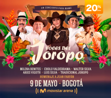 VOCES DEL JOROPO 2026 Movistar Arena Bogotá 9 Mayo Sáb 9 Mayo VOCES DEL JOROPO 2026 Bogotá 29 Mar Dom