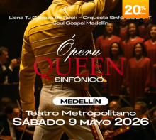 ÓPERA QUEEN SINFÓNICO - Medellín Teatro Metropolitano de Medellín Medellín 9 Mayo Sáb 9 Mayo ÓPERA QUEEN SINFÓNICO - Medellín Medellín 29 Mar Dom