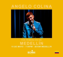 ANGELO COLINA EN MEDELLÍN BOOM STAND UP BAR - Cl. 26 #43g-30 BARRIO COLOMBIA Medellín 15 Mayo Vie 15 Mayo ANGELO COLINA EN MEDELLÍN Medellín 29 Mar Dom